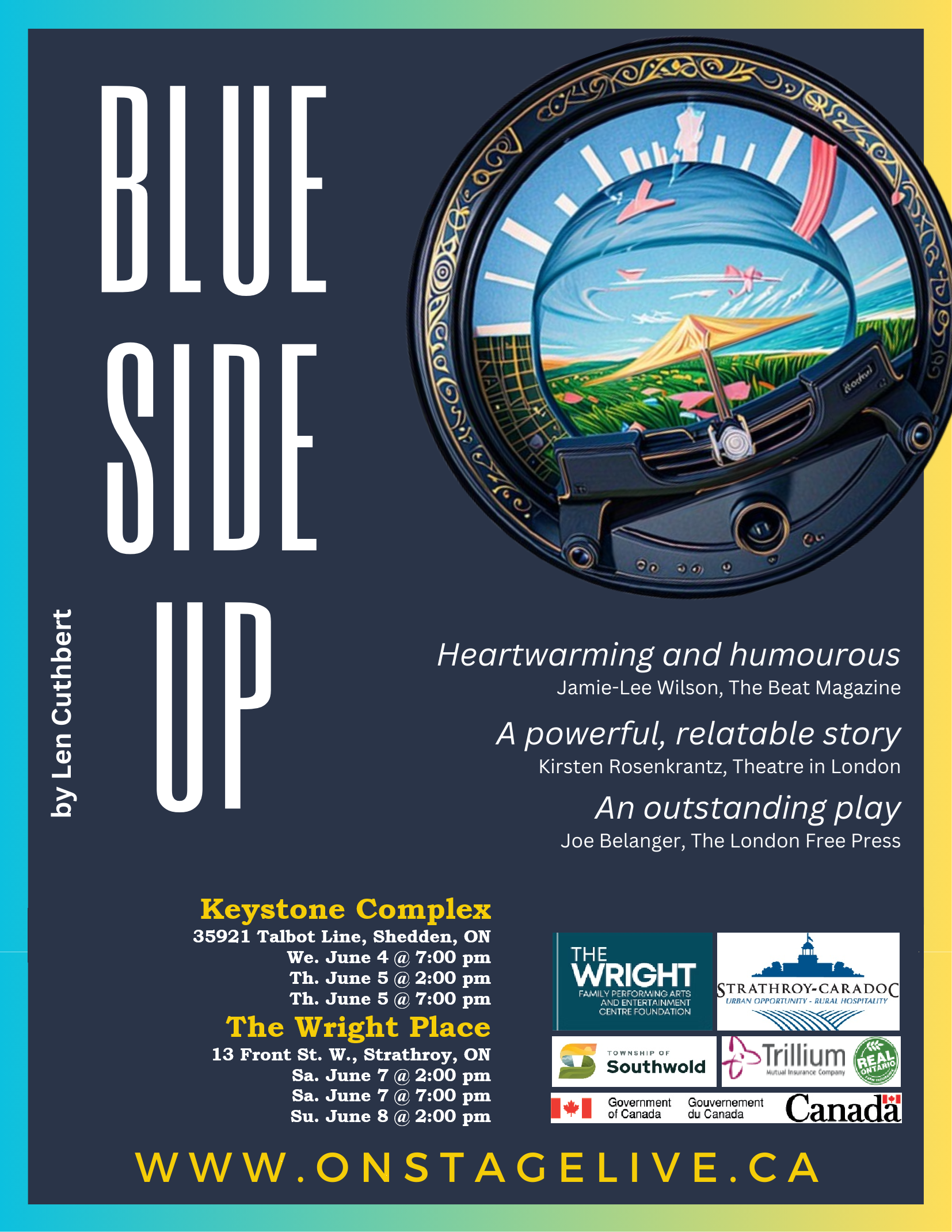 Blue Side Up, is a rewrite of Len Cuthbert's play, delilah., that was staged in London, ON in 2012 and 2013. |